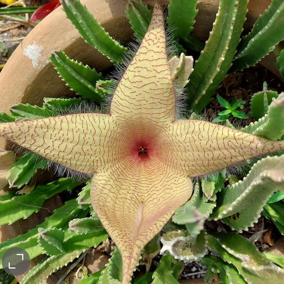La Orbea variegata, conocida como suculenta de estrella de mar, es una planta fascinante. Sus flores, de cinco puntas y textura casi marina, parecen haber salido directamente del fondo del océano. Es resistente, sobria y capaz de florecer en condiciones difíciles, recordándonos que la vida siempre encuentra la manera de continuar.